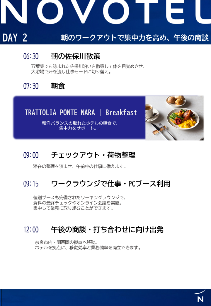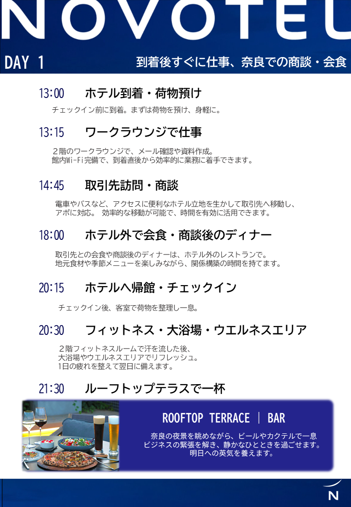 奈良市内・関西圏へのアクセスに便利なノボテル奈良を拠点に、仕事と滞在を効率的に両立。