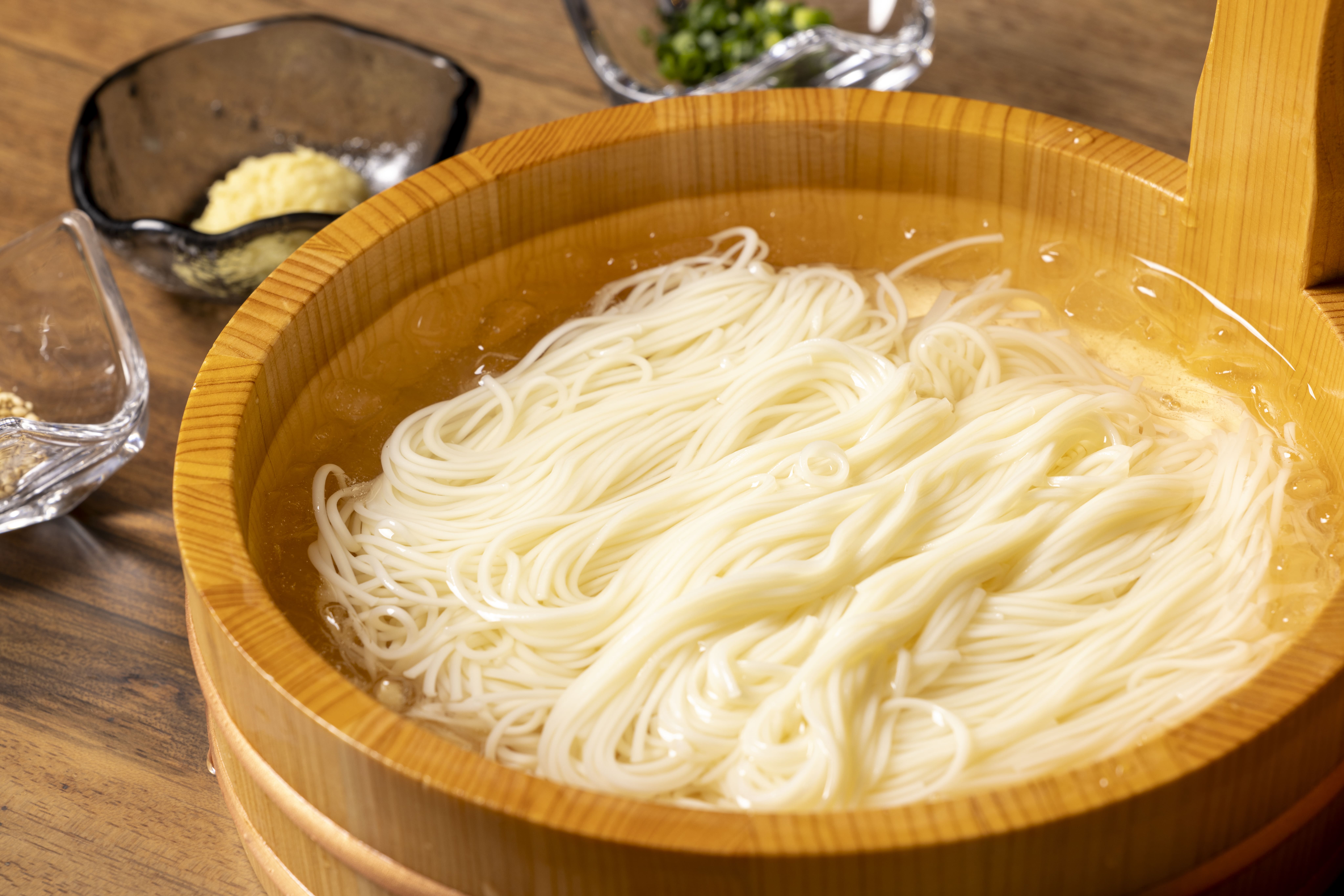 奈良・桜井市三輪地区は、日本最古のそうめんの産地として知られています。 厳選された小麦と清らかな水、冬の寒風が生み出す細く繊細な麺は、職人の技と時間が織りなす伝統の味。 ノボテル奈良では、この「三輪そうめん」を通常のだしの他に、ベジタリアンな方でも召し上がれるよう、野菜のみの上品なだしで仕立て、 その喉ごしと香りを最大限に活かした一品としてお楽しみいただけます。